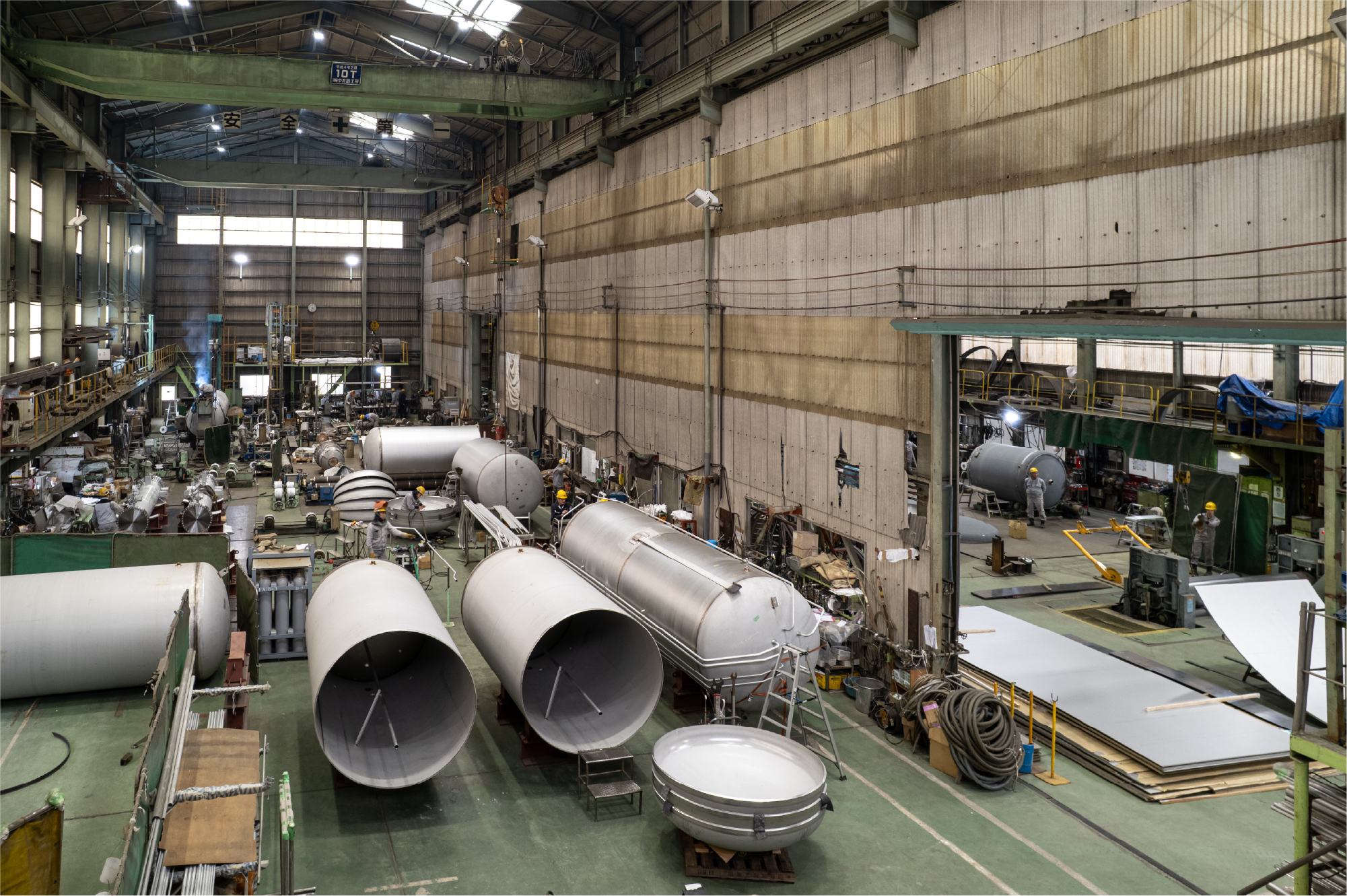 圧力容器の品質は、プラント全体の安全に直結します。今井鉄工所では、第1種・第2種圧力容器製造許可をはじめ、高圧ガス保安法等に基づく各種溶接認可を完備し、約15名の特別・普通ボイラー溶接士と約40名のJIS溶接資格を持つ熟練工を配置して、組織として品質を維持する教育体制を整えています。また、単に「作る」だけでなく、ISO 9001に基づいた万全の品質管理体制に基づき、複雑な申請業務から厳しい完成検査まで、法規案件のプロとして、お客様のコンプライアンス遵守と現場の安全を確約します。